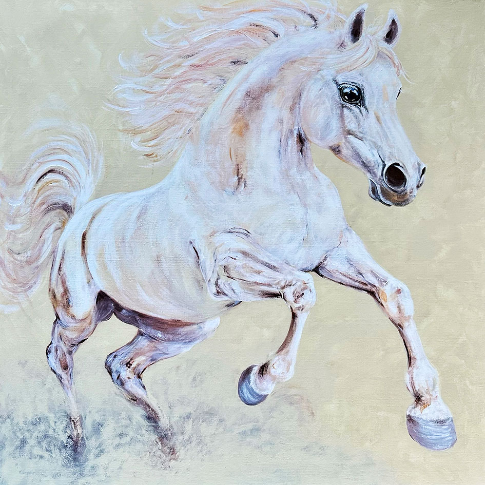 Das fertige Acrylgemälde vereint Kraft, Eleganz und Bewegung. Jedes Pferdeportrait ist ein Unikat – vollständig von Hand gezeichnet und gemalt, mit Zeit, Gefühl und Hingabe.